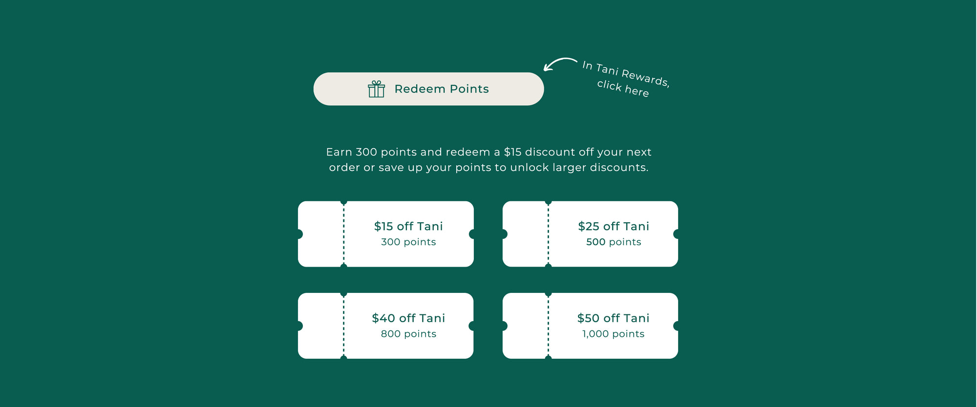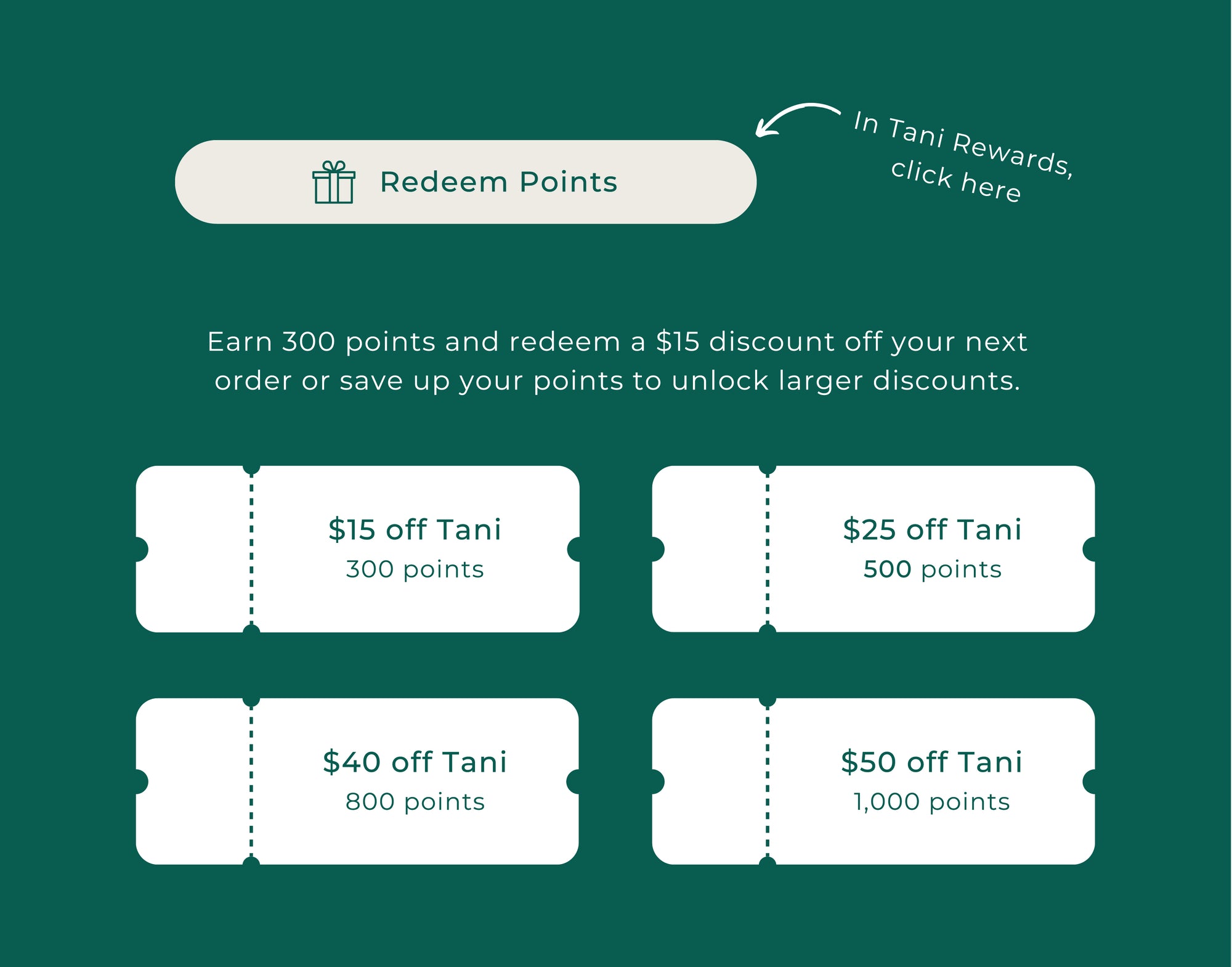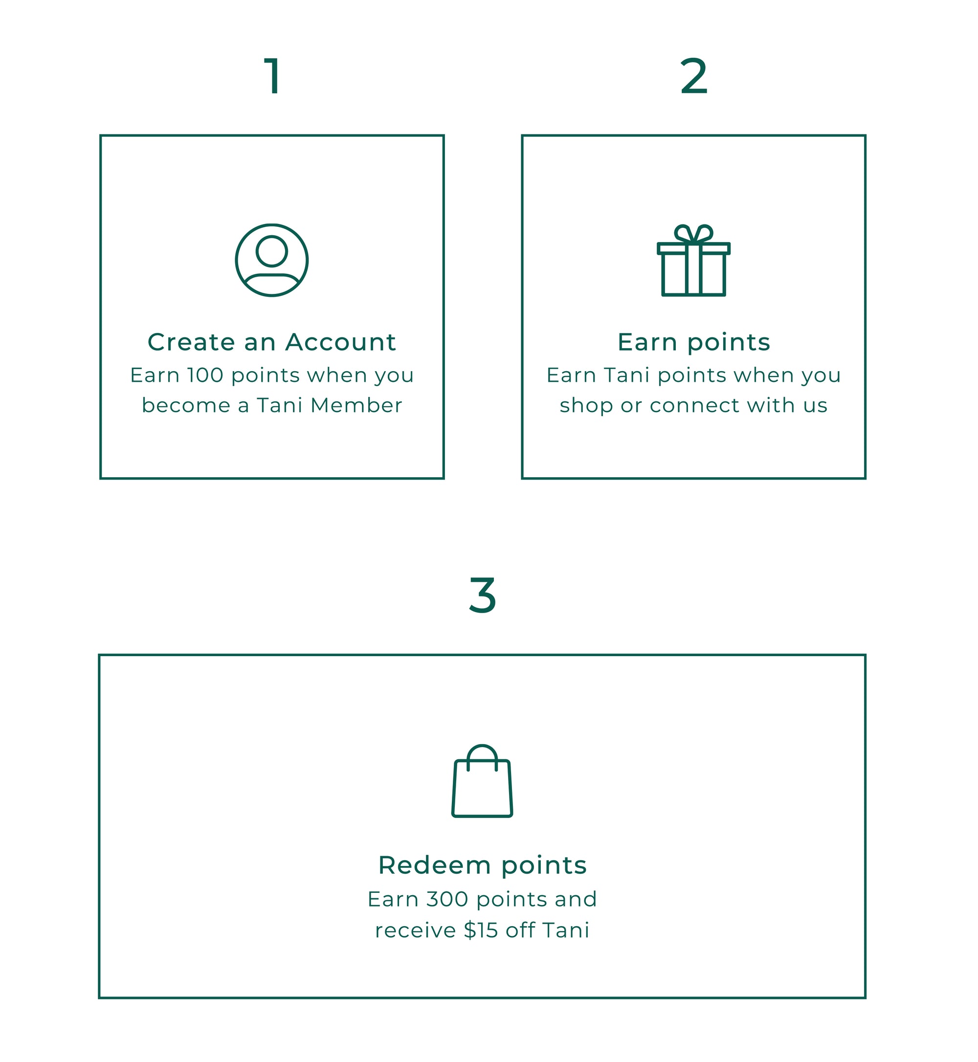 As a Tani Australia Member you can earn and redeem points for discounts with every purchase + bonus ways to earn points!